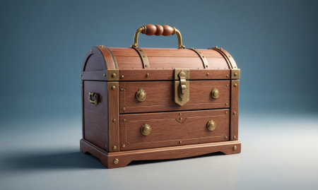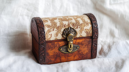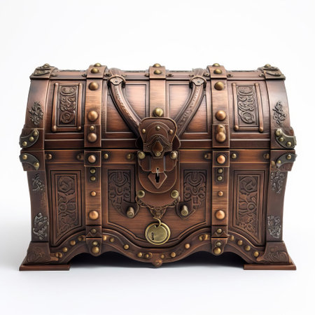 A beautifully crafted antique chest featuring metallic accents, perfect for adding a vintage touch to various creative projects and interior designs.