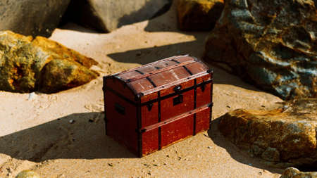 Old Classic Wood and Iron Treasure Chest on the Beach