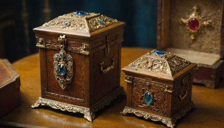 A vintage treasure chest surrounded by nostalgic items in warm lighting, evoking a sense of history and charm.