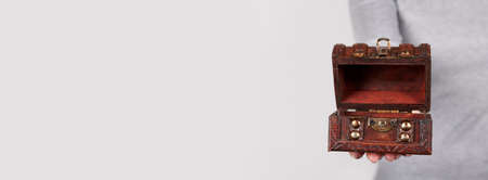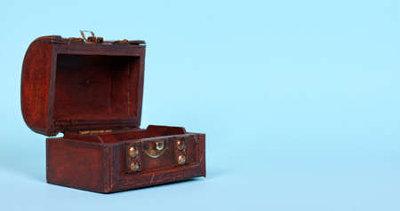 Treasure chest set against a single-color backdrop with plenty of room for text, suitable for advertisements or informational graphics.