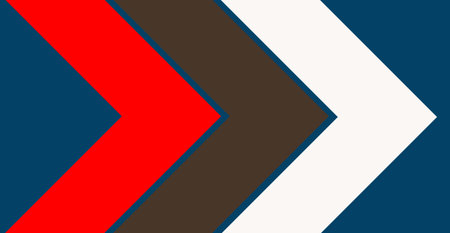 Closeup, Design three right arrow red brown white glyph icon. forward functions in media applications. Advanced symbol on blue space for illustration advertising, wallpaper, art print, vector, stock photo