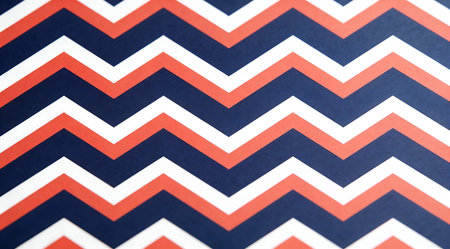 A creative digital illustration depicting Professional design of chevron zigzag pattern background in navy and coral, bold angular repeats, balanced crisp lighting, dynamic geometric vibe, clean tilable texture. This AI-generated artwork features unique visual elements suitable for various commercial and editorial applications. AI-generated illustration.
