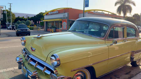 Oldtimer cars at Little Havana Calle Ocho - MIAMI, UNITED STATES - FEBRUARY 20, 2022