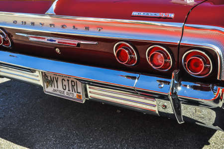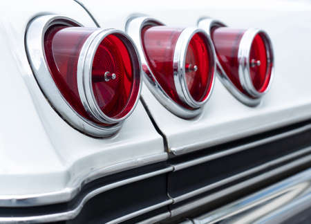 Taillight of an old classic American car, close up shot on a sunny summer day