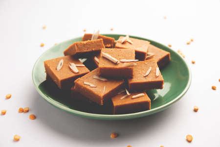 Besan burfi or Mohanthal roasted barfi - an indian sweet