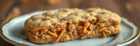 Delicious homemade peanut butter cookie bar with a golden brown crust served on an elegant plate