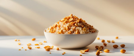 AI Generated. Toasted Glazed Rice and Peanut Mix in a Bowl Perfect for Healthy Snacks and Meal Prep
