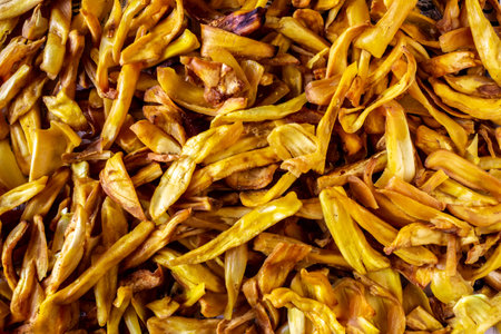 Top view of delicious jackfruit chips. Use for food background