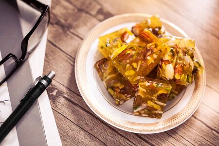 Slices of traditional dessert from Shiraz, named masghati