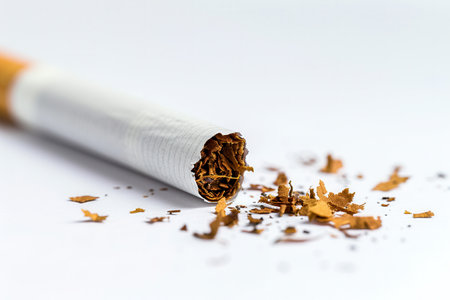 A broken cigarette lies on a pristine white background, symbolizing the choice to quit smoking and embrace a healthier future.