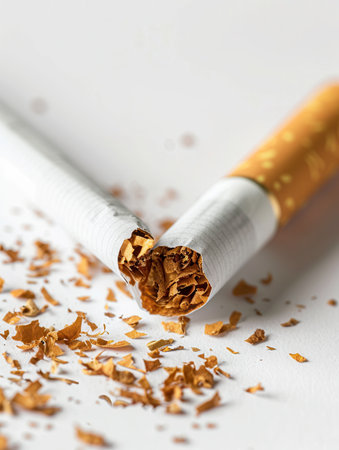 A broken cigarette lies on a pristine white surface, symbolizing the decision to quit smoking and embrace a healthier lifestyle.