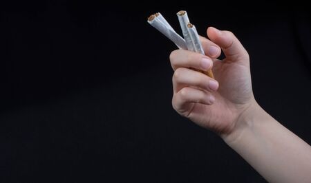 Cigarette, breaking. Smoking tobacco in rolled paper on black grunge texture background. For any smoking concepts, World No Tobacco Day or WNTD, on 31 May, or the dangers of using tobacco ideas.