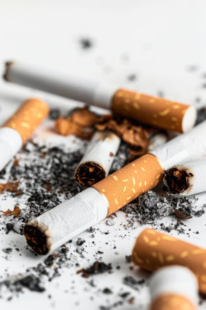 A broken cigarette with tobacco scattered, representing a decisive moment in the journey to quit smoking for a healthier life.