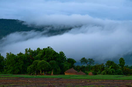 Mountain landscape with fog and mist in the morning, Thailand.