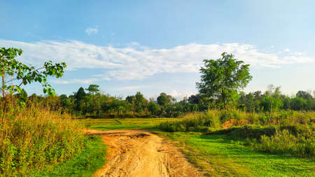 Rice field in the countryside of Thailand. Nature landscape background.