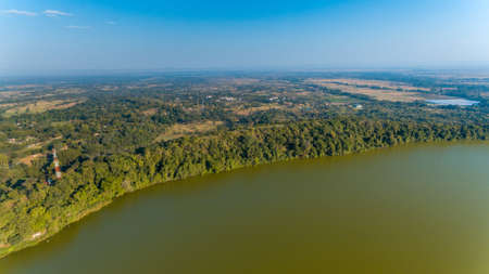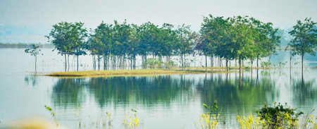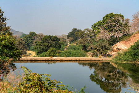 Landscape with trees and lake in Ranthambore, India