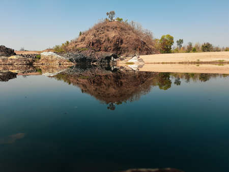 Landscape photo, a river at the Tad-Tone Waterfall National Park, in rainforest at Chaiyaphum province, Thailand , on a smokey day