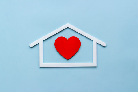 Layout depicting the proverb Home is where the heart is. Selective focus points. Blurred background