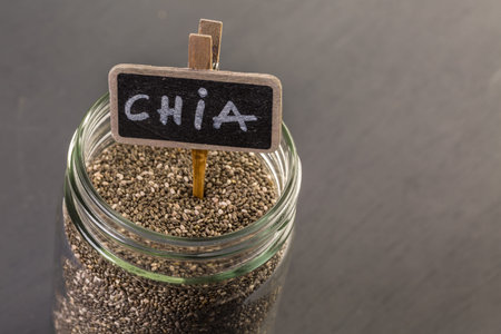 chia seeds on the table. Superfood, nutritional supplements, weight loss