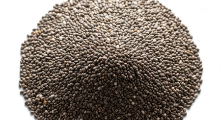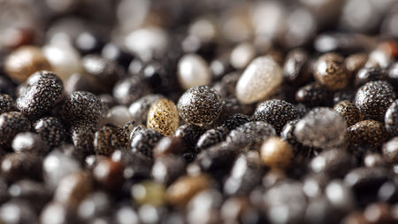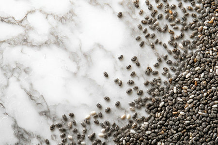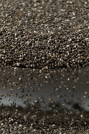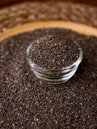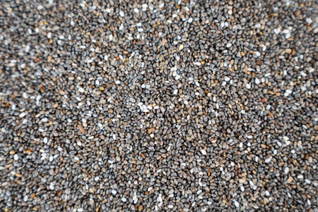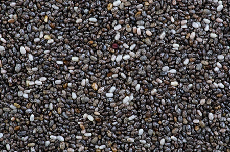 Top view of chia seed texture filling the frame. Ideal for nutrition, clean eating, and vegan diet content.