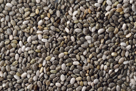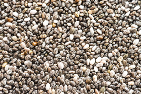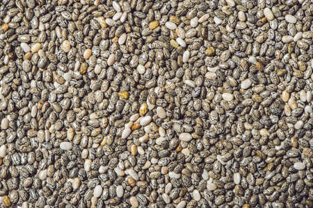 Dry organic chia seed background. Concept of agricultural product or healthy and diet food ingredient