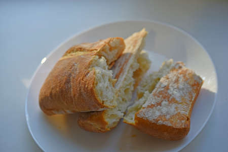Fresh ruddy bread in chunks on a white plate