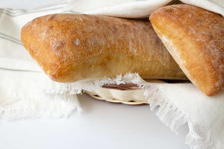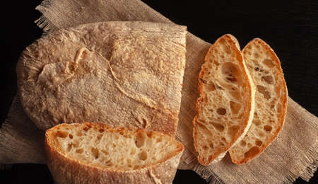 Italian ciabatta bread, food closeup Fresh homemade bread. Unleavened bread. Ciabatta bread.