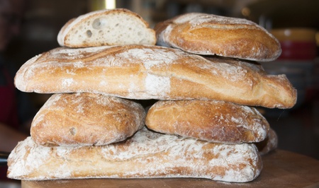 Tradiional Italian ciabatta bread, homemade with olives