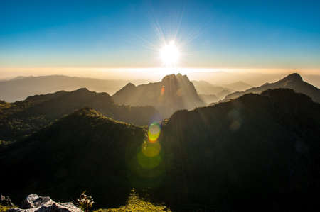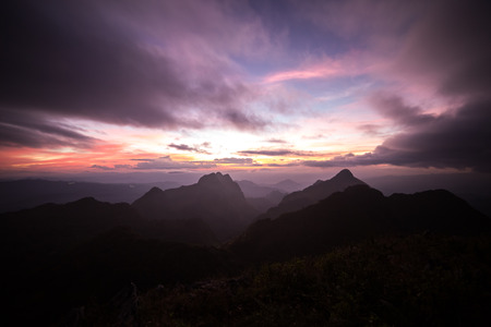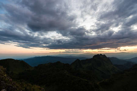 Silhouette sunset on the sub alpine mountain, Thailand