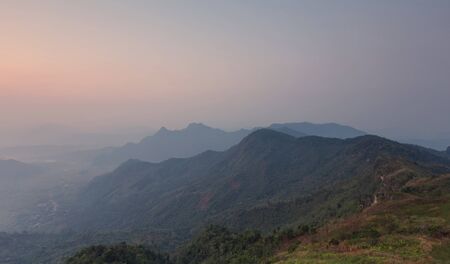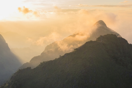 The fog over green mountain at sunset in north of Thailand