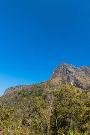 Beautiful sunset on rocky Limestone Mountain and green forest with blu sky at Chiang doa national park in Chiangmai, Thailand