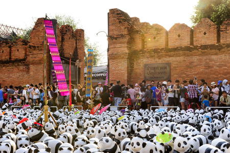 Chiang Mai Thailand - March 19 , 2016 : 1600 Pandas+ WWF. THAILAND, Exhibitions art of 1600 pandas. is part promoting the conservation of wildlife of Thailand, This event show at Tha Pae Gate plaza.