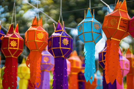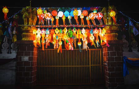 Lamphun, Thailand - November 28, 2015: colorful paper lantern decoration for Yeepeng festival at Wat Phra that hariphunchai temple in Lamphun, Thailand on November 28, 2015.