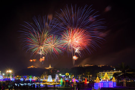 Phetchaburi,Thailand-February 16,2018: Fireworks festival organise an event in the Phra Nakhon Khiri(Khao Wang)Historical Park