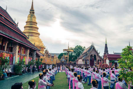LAMPHUN THAILAND- SEPTEMBER 26 : Slakpat Lanna tradition at Wat Phra That Hariphunchai on September 26, 2015 in Lamphun, Thailand.