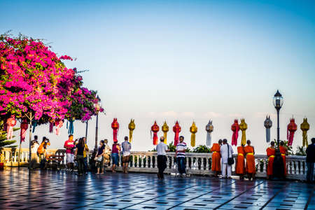 Chiang Mai, Thailand - Decemer 31st, 2019: Sunrise at Wat Phra That Doi Suthep temple, Chiang Mai, Thailand, Asia