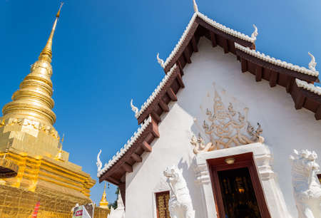 Wat Phrathat Doi Kham, Buddha pagoda and golden chedi in Chiang Mai, Thailand