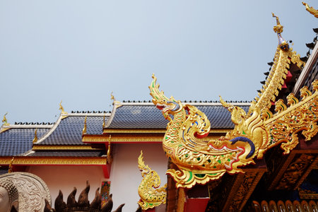 beautiful details of Thai fine arts at Buddhist temple. beautiful new temple near Chiang Mai, Thailand