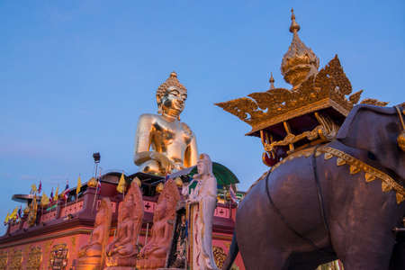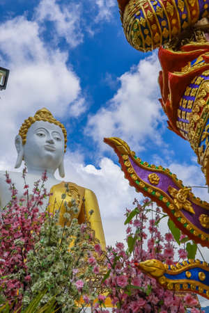 Chiang Mai, Thailand - November 19, 2018: Outdoor big sitting Buddha statue at Wat Phra That Doi Kham Temple, one of famous monastery in province.
