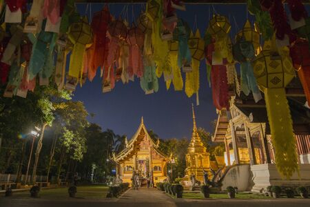 Colorful Lamp Festival and Lantern in Loi Krathong at Wat Phra That Hariphunchai, Lamphun Province, Thailand