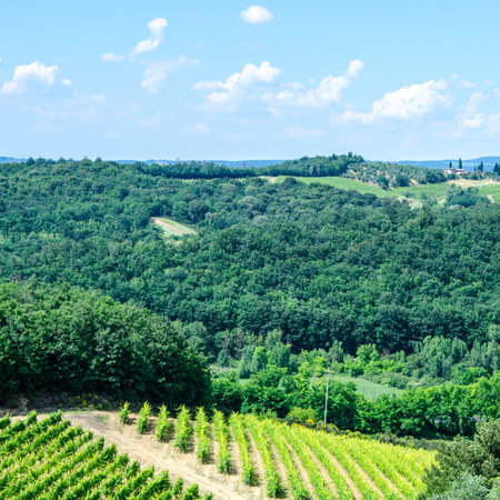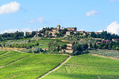 Landscape in Chianti (Florence, Tuscany, Italy) with vineyards at summer