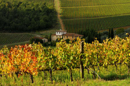 pictorai countryside with vineyards in autumn. Tuscany, Chianty region, Italy