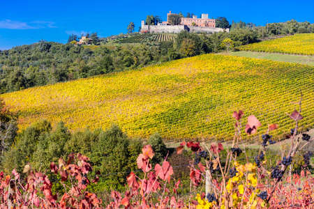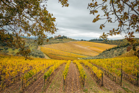 Autumn vineyard in Chianti, Tuscany, showcasing the golden hues of the season