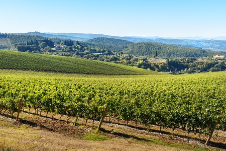 Vineyard in Chianti region in province of Siena. Tuscany landscape. Italy