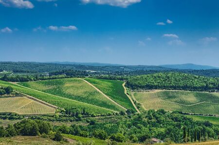 Typical Tuscan landscape with vineyards near San Gimignano-Italy