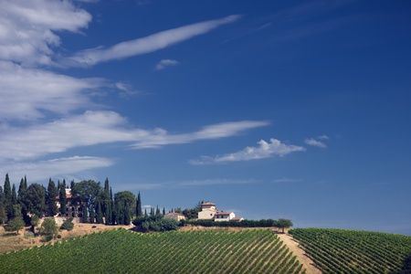 Beautiful landscape of Vineyards in Tuscany. Farm House, italy.