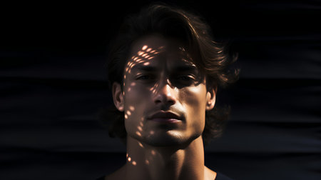 Ethereal shadows dance across a serene face, capturing a blend of mystery and elegance. The gentle interplay of light and darkness evokes deep introspection. Generated A.I.
