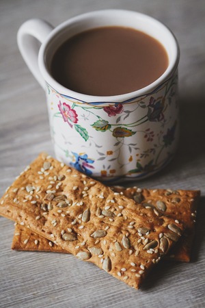 Biscuits and cup of cocoa on the wooden table