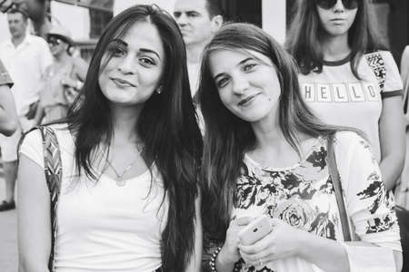 MINSK, BELARUS.August 12, 2017 Two friends are standing on the street