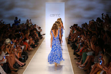 MIAMI, FL - JULY 20: A model walks the runway at the Caffe Swimwear during MBFW Swim 2015 at The Raleigh hotel on July 20, 2014 in Miami, FL.